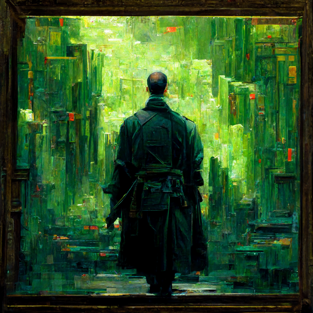 The following is an image that I made with artificial intelligence using the prompt “Impressionist painting of the Matrix”